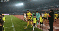 双方球员大摇大摆地走进球场,大战一触即发,气氛拉满!