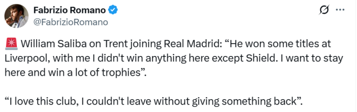 以下为萨利巴表态详情——信息来源罗马诺社交媒体。